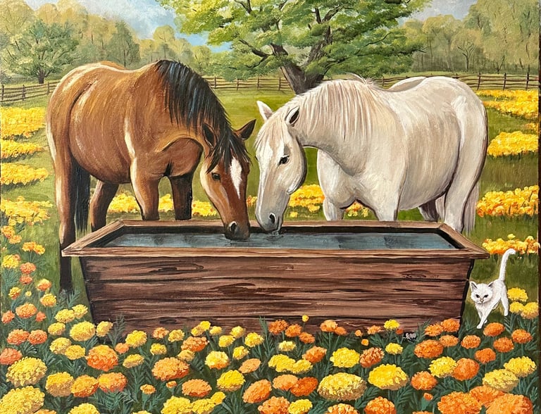 Tracy Massey's acrylic paintings are a captivating exploration of color and creativity. Each artwork bursts with rich hues that invite the viewer into a vibrant world, drawing the eye to intricate details and inviting closer inspection.